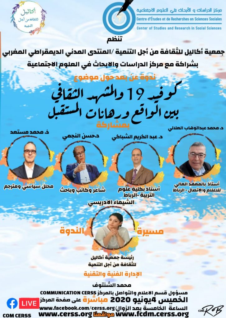 كوفيد 19 والمشهد الثقافي بين الواقع ورهانات المستقبل 12/06/2020 https://www.facebook.com/cerss.org/videos/566604160947863/